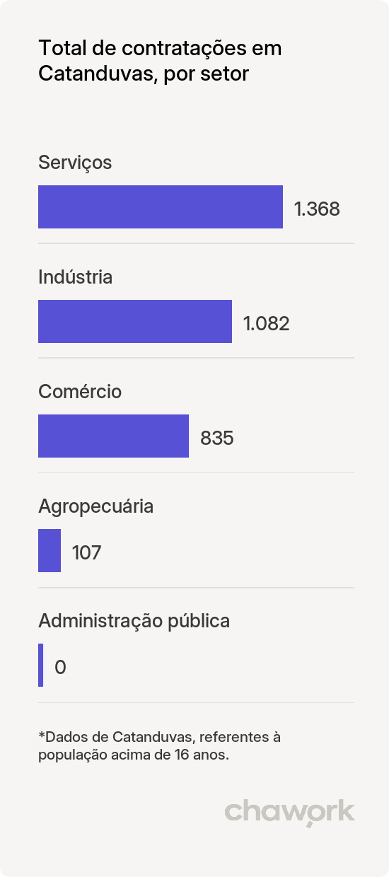 Através da nossa plataforma de recrutamento e seleção, você, catanduvense, tem a possibilidade de se desenvolver juntamente com a sua localidade e com Paraná. A Chawork entende as exigências regionais, dessa forma, consegue unir organizações e talentos de forma estratégica.